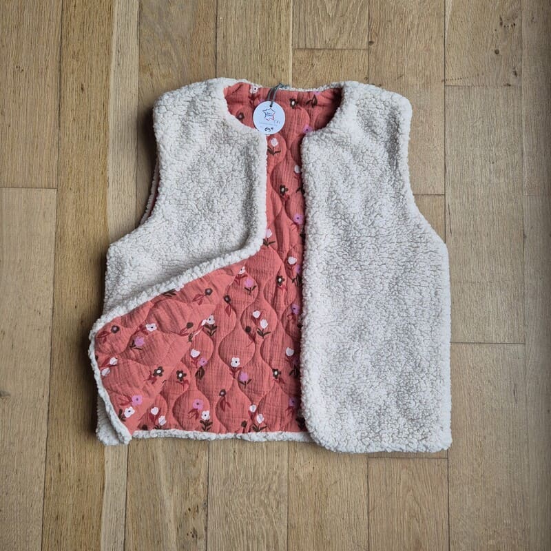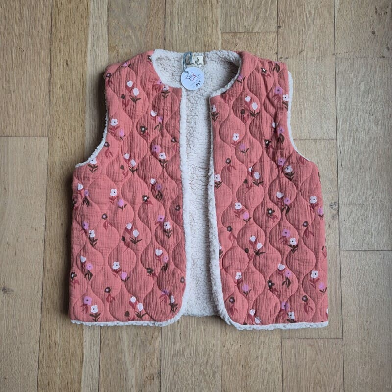 🌸 Extérieur en gaze de coton imprimé fleurs, mais on peut aussi mettre l'imprimé à l'intérieur. Le gilet de berger est réversible.